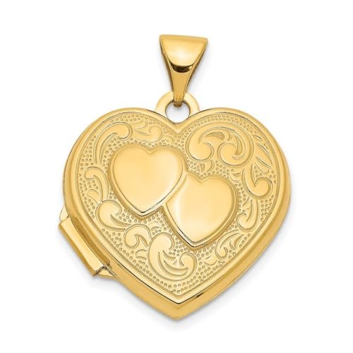 JewelryWeb 14k Yellow Gold Polished Holds 2 photos Double Love Heart Locket 24×18.6mm Wide Locket Necklace for Women
